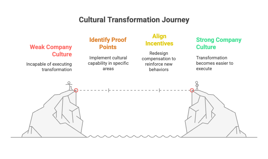Here's the irony: the firms that most need cultural transformation are least capable of executing it. Strong cultures make transformation easier; weak cultures make it nearly impossible.